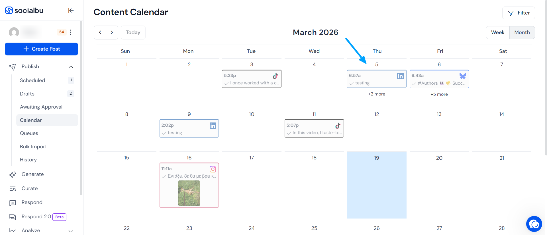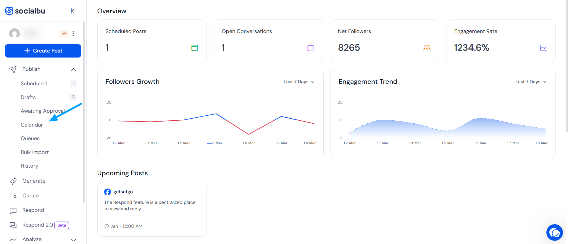 Or visit https://socialbu.com/app/publish/calendar directly