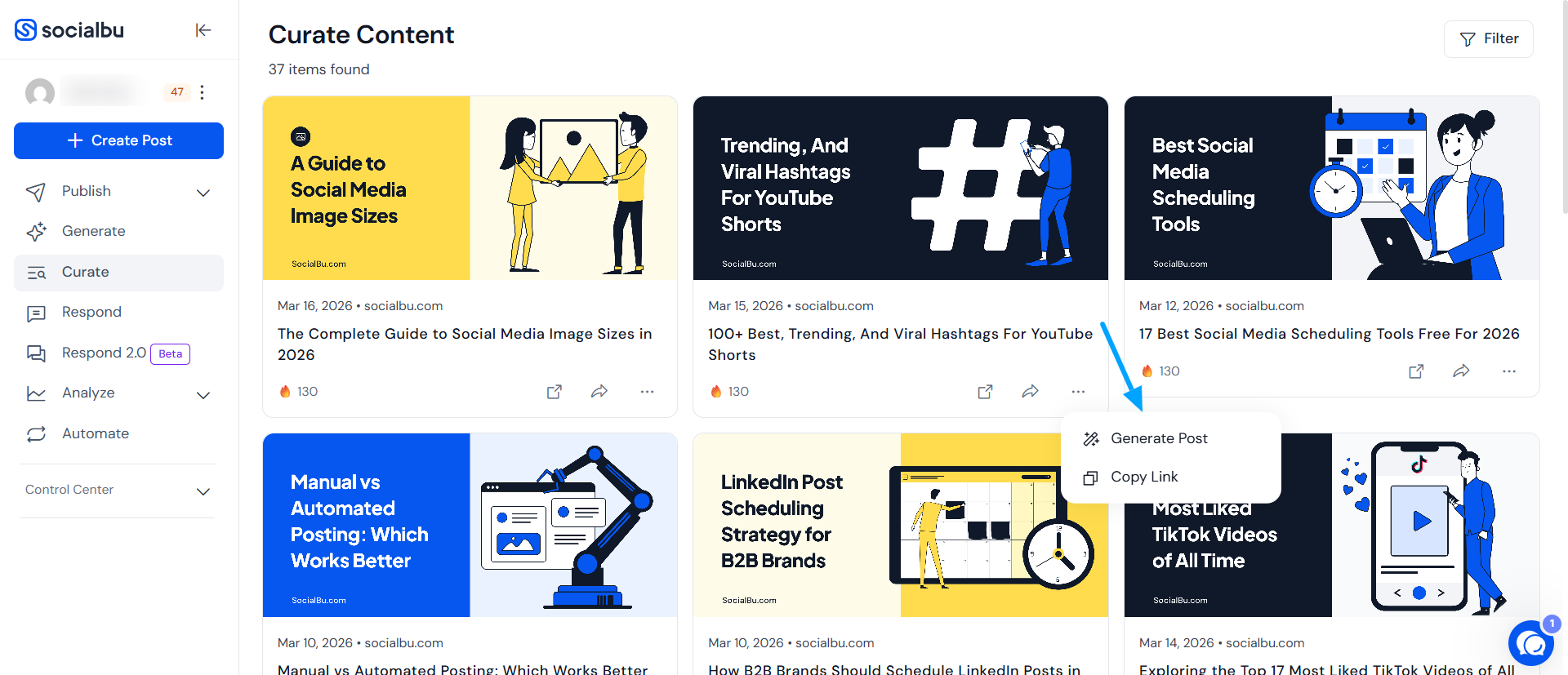 SocialBu allows you to generate a post from the curated article with just a few clicks. You can publish it immediately or schedule it to go live later. The process is seamless and designed to save you time.